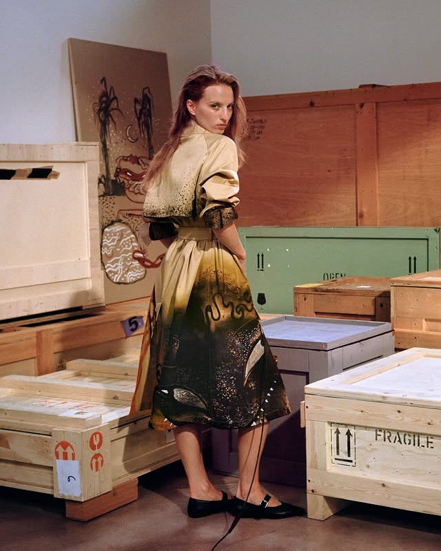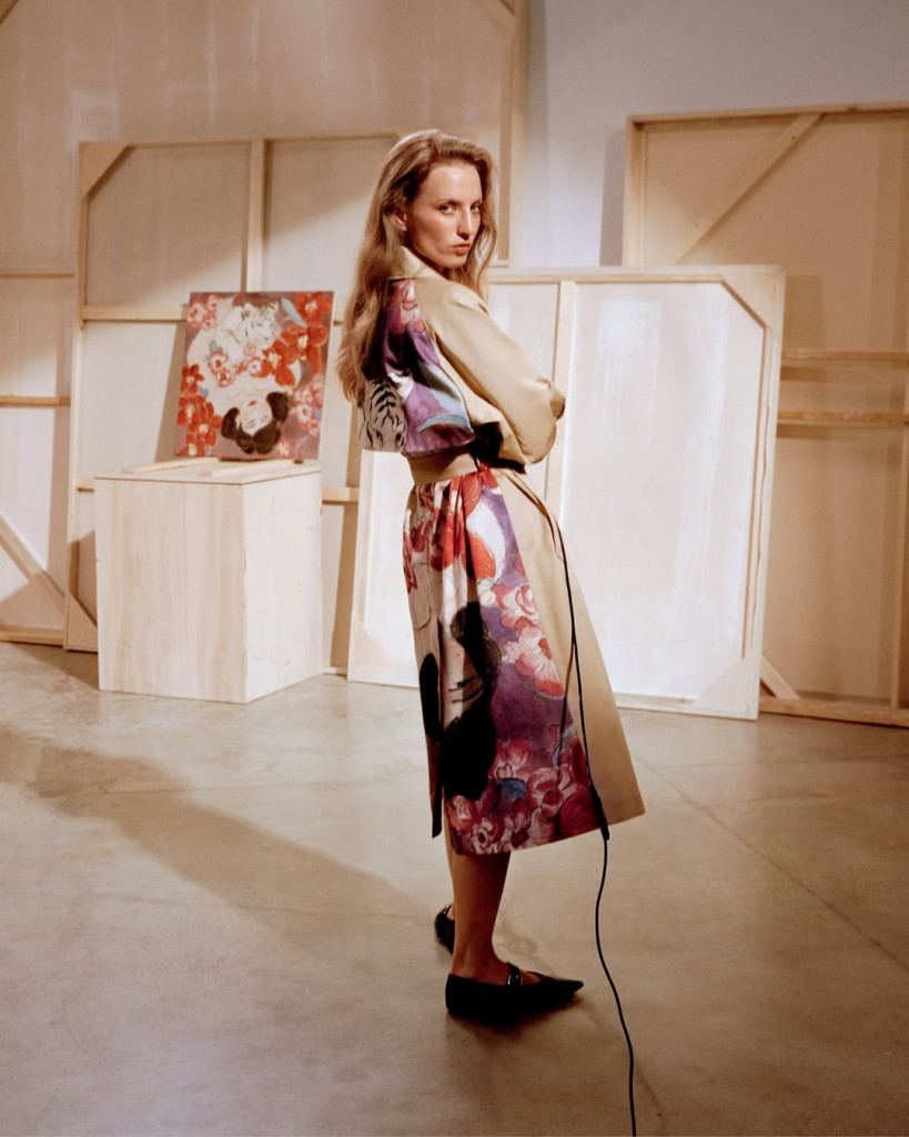 Alors que le Max Mara Art Prize for Women a fêté l’année dernière ses 20 ans d’existence, Weekend Max Mara s’attache également à nouer des liens avec le monde de l’art contemporain. Lancée en 1983, cette ligne plus casual de Max Mara a eu la bonne idée pour le printemps-été 2026 de faire réinterpréter par une palette de créatrices internationales l’une des icônes de son vestiaire. Réputée depuis toujours pour ses manteaux, la marque italienne a ainsi opté pour son trench-coat signature Canasta en guise de toile blanche confiée à cinq artistes féminines, qui s’en sont emparé pour décliner à la fois leur vision créative et leurs techniques de prédilection. Le nom de cette collection ? « A Weekend With An Artist ».