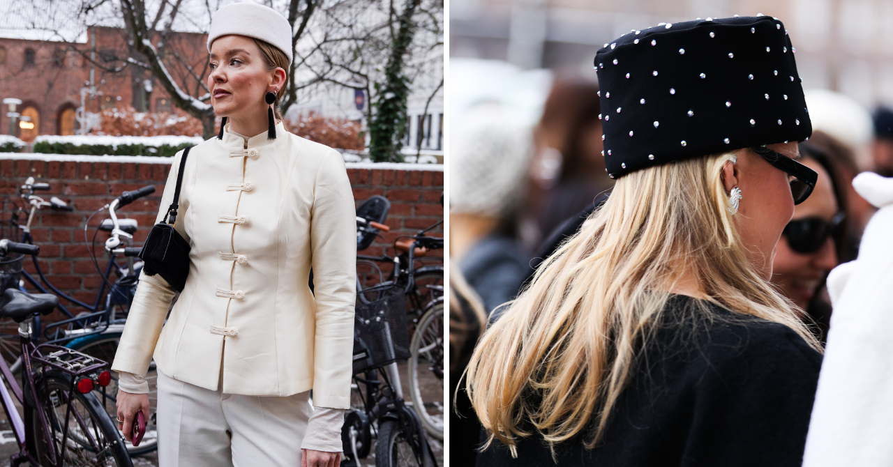 De pillbox was trouwens niet de enige hoed die in de straten van de Deense hoofdstad te zien was. Ook baker boy caps en bonten mutsen werden door menig modeliefhebber gedragen tijdens Copenhagen Fashion Week herfst/winter 2026.